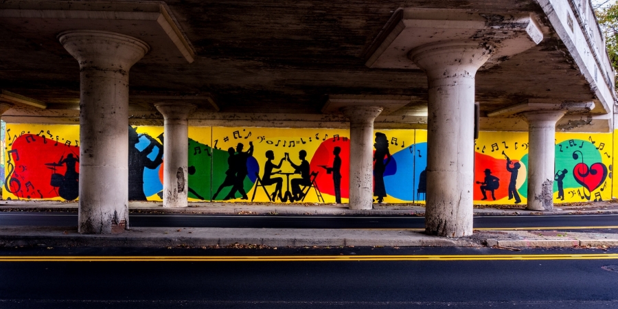 Google Map Location"Take Flight" by Artist Dion Brown is located near the intersection of Clemens Center Parkway and Pennsylvania Avenue, Elmira, New York, on the Railroad Viaduct Wing. "Take Flight" by Artist Dion Brown is Presented by the Chemung County Chamber of Commerce, Elmira Downtown Development, Community Arts of Elmira and City of Elmira Second District Councilperson Brent Stermer! (2021) This project was made possible, in part, with public funds from NYSCA’s Decentralization Program, administered regionally by the ARTS Council of Southern Finger Lakes The ARTS Council of the Southern Finger Lakes